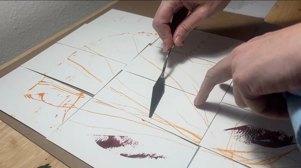 Each painting in this collection is an original, created in layered stages that speak to one another. I began by drawing with string across the surface, then moved into strokes of emotion and movement with a palette knife, and finally added touches of collage.
